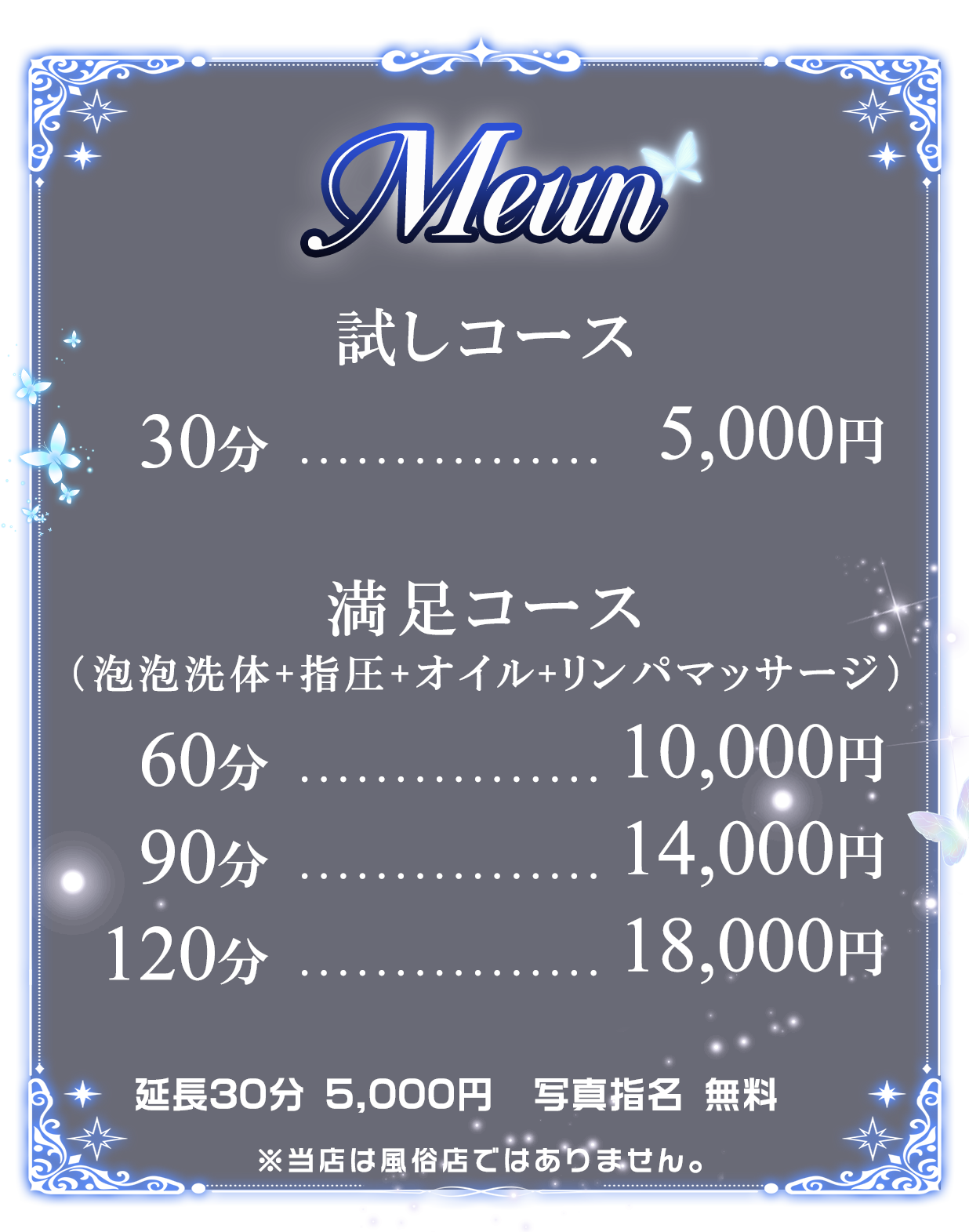 当店のセラピストは容姿が良いだけではなく、技術、マナー、気遣い等、接客面にも妥協をせず、お客様に身も心もゆだねて頂けるような愛されるセラピストとの出会いをお約束致します。どうぞ、ご安心してご利用くださいませ!